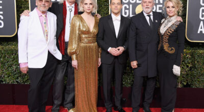 Los dos posaron así junto a parte del equipo y junto a los integrantes de Queen en la alfombra roja de los premios.