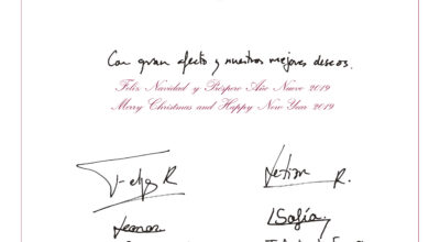 El texto de la postal del año pasado, escrito a mano decía: "Con gran afecto y nuestros mejores deseos" y en letra dorada impresa, "Feliz Navidad y Próspero año nuevo 2019". Como novedad, el año pasado se añadió al Christmas el monograma de los Reyes, una "F" y una "L" debajo de una corona y el escudo del rey Felipe VI.