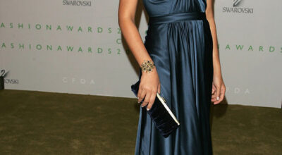 Para los Premios Grammy 2007, la estrella del pop optó por un vestido largo y verde con un efecto drapeado de Roberto Cavalli.