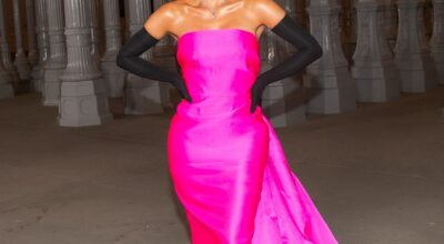 La empresaria, conocida por su sentido de la moda, hizo su regreso triunfal con Balenciaga, eligiendo un deslumbrante vestido satinado de color fucsia. El diseño presentaba un escote en forma de corazón, una espalda al aire y una cola impresionante, complementado con guantes largos negros y deslumbrantes joyas de Lorraine Schwartz.