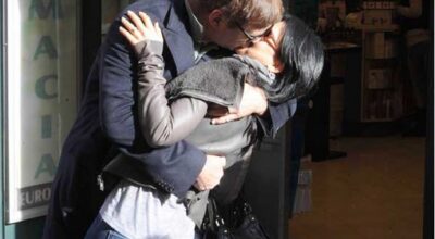 Alec Baldwin besa a su nueva mujer, Hilaria Thomas, en la calle.