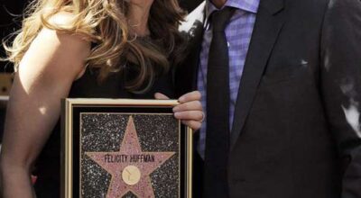 Felicity Huffman le da un casto beso a su marido, William H Macy.