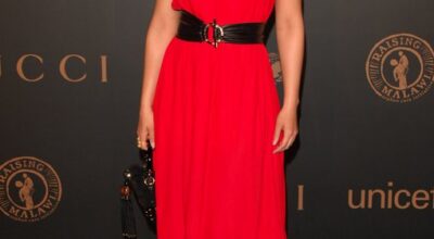 Alicia Keys con un sencillo vestido rojo