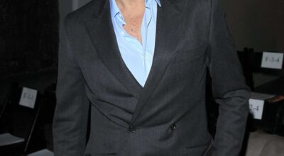 Bill Cunningham con un traje negro