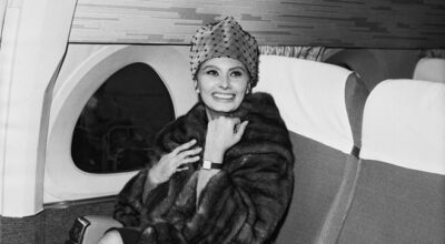 Sophia Loren volando a Milán.
