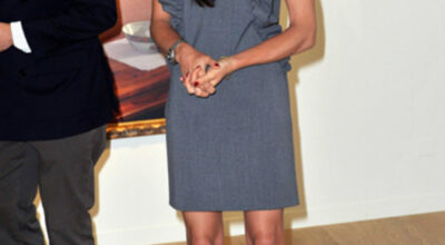 Carlota Casiraghi, escogió un sobrio vestido gris para la exposición MBE en el Villa SauberMuseum, en 2010