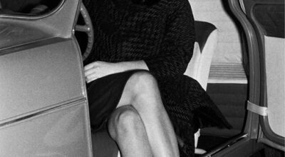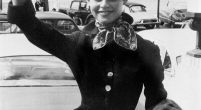 Brigitte Bardot probando su coche nuevo, un Vespa 400.