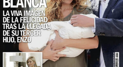 La revista Diez Minutos nos muestra a unos felices Borja y Blanca con su tercer hijo en los brazos.