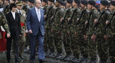 El rey Juan Carlos pasea entre el ejército en su visita a Suiza en mayo de 2011.