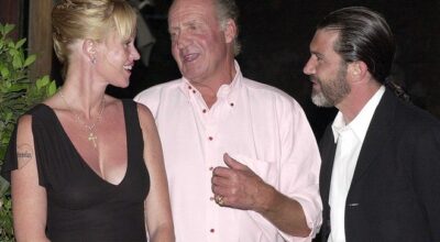 Don Juan Carlos de Borbón junto a la guapísima Melanie Grinfield y su marido, el actor español de reconocimiento internacional Antonio Banderas, en un restaurante en Mallorca.