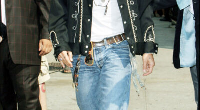 Hay looks indescriptibles y luego está éste. El actor se planta los pantalones anchos, con chaqueta negra estilo cowboy, con cinturón... ¡Ay madre, no puedo seguir!