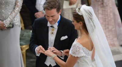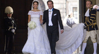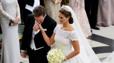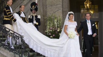 Por fin la princesa Magdalena de Suecia tenía su final feliz junto al financiero estadounidense Chris O´Neill. La novia, que como manda la tradición llegó cinco minutos tarde al altar, lució un espectacular vestido de Valentino de seda plisada con encaje de chantilly, manga corta, cuello de barco y una espectacular cola de cuatro metros de largo.