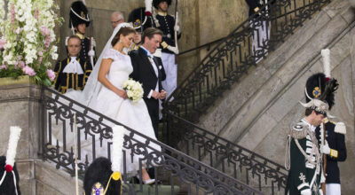 Los novios se besan ante la sociedad de Estocolmo.