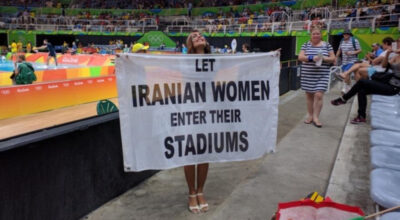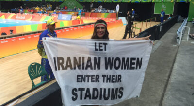 Desde 1979, fecha en que se produjo la Revolución Islámica, las mujeres iraníes tienen prohibido el acceso a eventos deportivos masculinos. Una norma que levanta ampollas en el país y contra la que luchan cada día más mujeres. Darya Safai es una de ellas. Esta activista nacida en Teherán y residente en Bélgica decidió viajar a Río para sacar su pancarta reivindicativa en cada partido que jugase la selección iraní de voleybol, deporte también vetado desde el 2012 al público femenino de Irán. Dicho y hecho: el sábado pasado Safai se presentó en el Maracanazinho, donde Irán y Egipto disputaban uno de los partidos, con las mejillas pintadas con los colores de la bandera de su país y mostrando una gran pancarta en la que se podía leer Let Iranian Women Enter Their Stadiums.