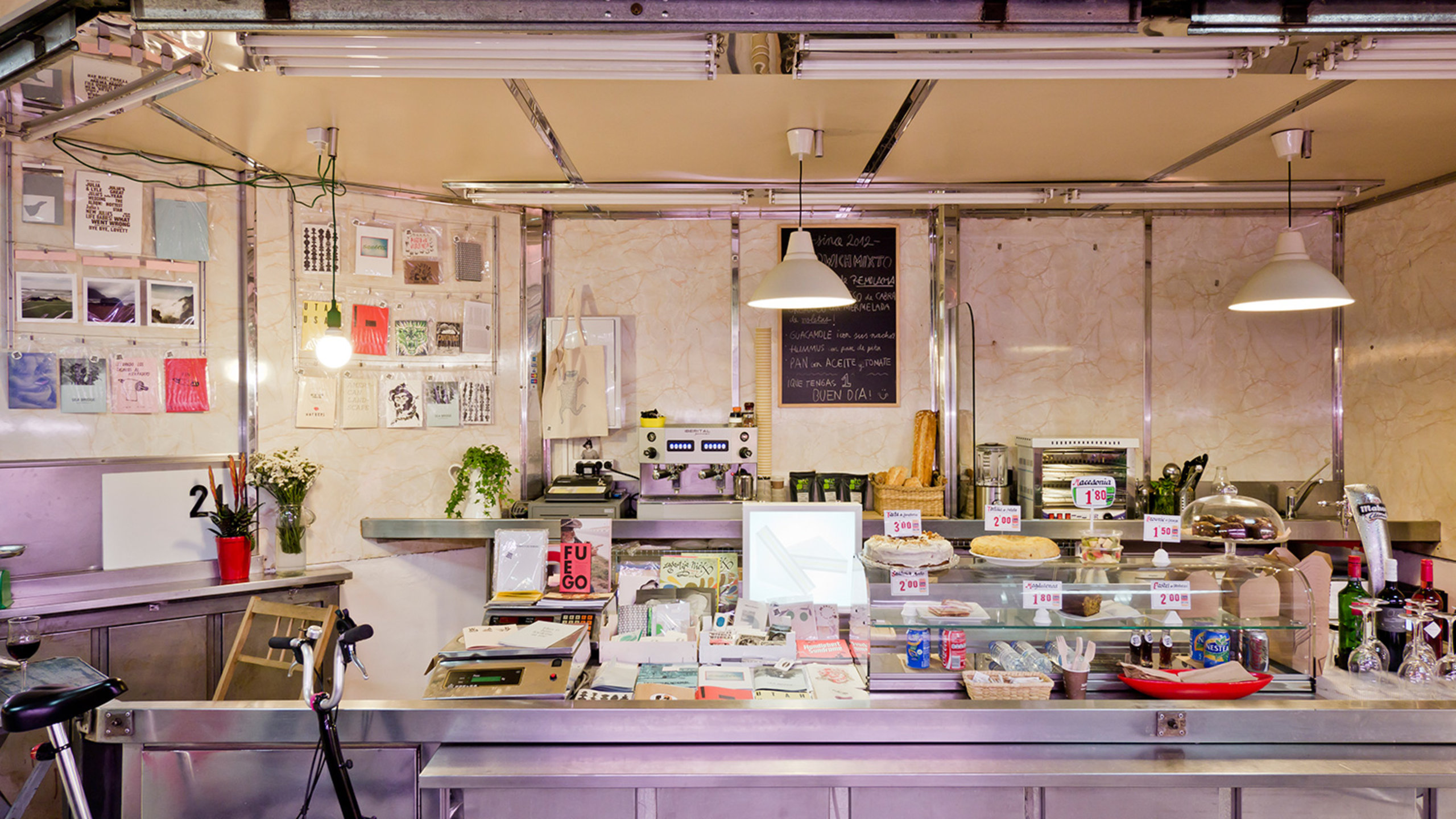 En un mercado de barrio, entre puestos de verduras y carne, Virginia comenzó hace cinco años con su negocio: Sándiwch Mixto, un estudio gráfico. Después de comer nos hemos trasladado a él para conocer una divertida técnica de impresión realizada con máquinas de Risograph. Pero Sándwich Mixto no solo es un espacio de trabajo, también de ocio, pues en su bar puedes disfrutar de un buen café, de un plato de comida casera o descubrir algunas de las publicaciones autoeditadas más interesantes del país. Sin duda, uno de los lugares más curiosos y conocidos del barrio de Antón Martín.