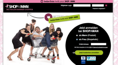 Shop a man es la versión alemana de Adopta un tío y de otras otras plataformas similares. Un conjunto de apps para ligar en la que hombres y mujeres no se consideran iguales: aquí las mujeres quienes en su papel dominante eligen, como si de objetos se tratase, al hombre de sus sueños. Una forma de darle una desacertada vuelta a la forma de flirtear más tradicional en la que el hombre toma la iniciativa y, sobre todo, una respuesta indignante a la cosificación de la mujer, puesto que aquí son ellos los objetos sexuales.