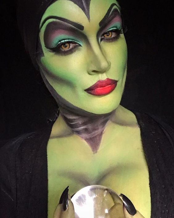 Si eres fanática de Disney puedes recurrir a algunas de nuestras villanas favoritas, como la bruja Maléfica. Para caracterizarte como ella puedes seguir un tutorial de maquillaje con tonos morados y verdes, acordándote luego de marcar y perfilar sus rasgos más característicos, los ojos, la nariz y los pómulos. No te olvides de utilizar un pintalabios llamativo.