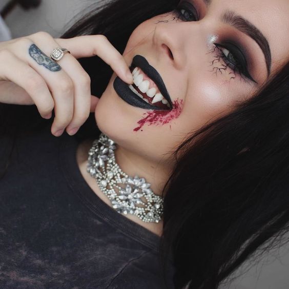 Los vampiros siempre han sido los seres siniestros más elegantes. Para conseguir parecerte a ellos solo hacen falta un par de detalles, entre los que no puede faltar un par de colmillos falsos, un poco de sangre falsa y tu maquillaje habitual.