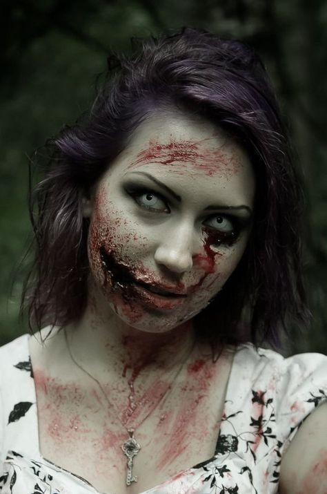 De un clásico pasamos a otro con este maquillaje de zombie. Es posiblemente uno de los más sencillos de conseguir, ya que simplemente hace falta poner pintura blanca, verde o de un tono claro en la cara, incluyendo los labios.