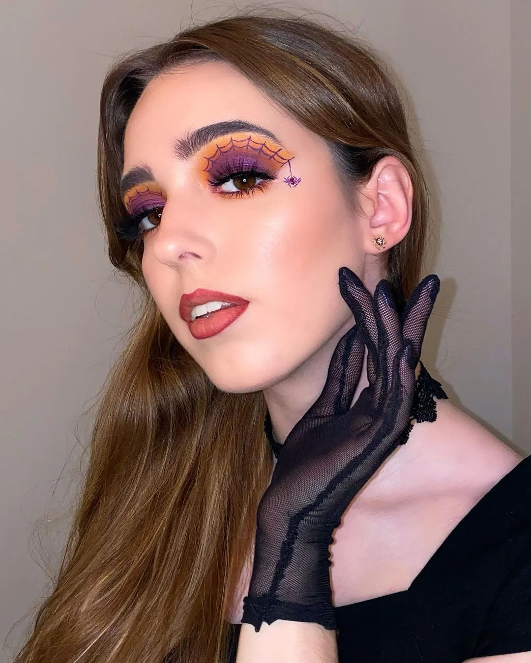 Aquí tenemos otro maquillaje para Halloween minimalista y sencillo. Tan solo habría que deternerse en los párpados para conseguir un diseño de tela de araña como en el de la foto ¡perfecto!