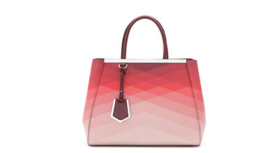 Fendi nos propone un shopping bag en piel rosa y con estampado geométrico degradado.