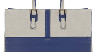 Giorgio Armani nos brinda el perfecto shopping bag en piel, dinamizado gracias a la mezcla bicolor.