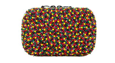 Este clutch cuajado de color nos traslada a la divertida atmósfera de los desfiles de Jean Paul Gaultier.