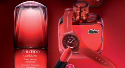 Polo y cinturón Lacoste, té Bomec, sérum One Essential Dior, Revitalift Laser X3 L’Oréal Paris y perfume Flower Tag Kenzo.