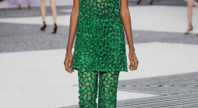 Una colección en la que blanco, negro, verde y naranja se convierten en auténticos protagonistas de la explosión floral que reina en su colección.