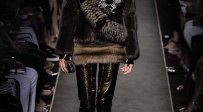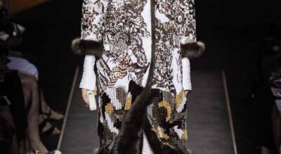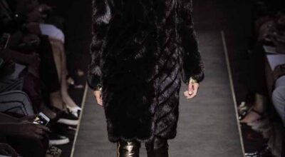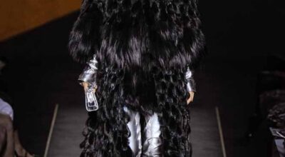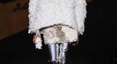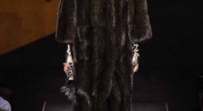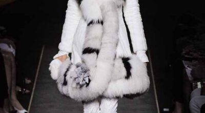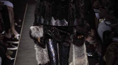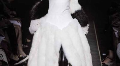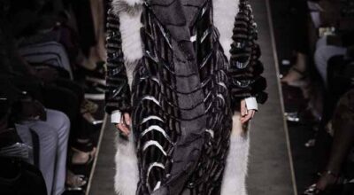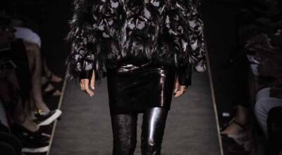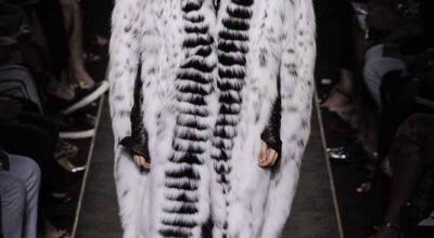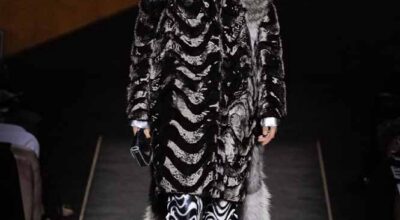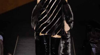 Voluminosos abrigos de pieles, entre los que han predominado los colores naturales, unidos a su particular estilo andrógino, han desfilado por la pasarela complementados por botas altas y complementos de pelo.