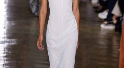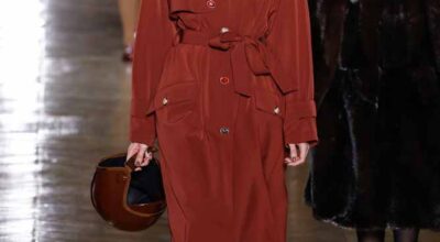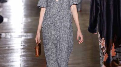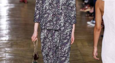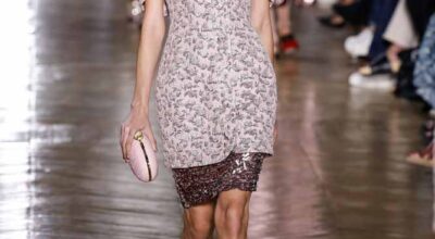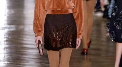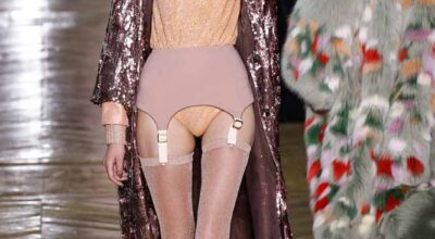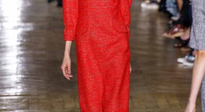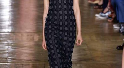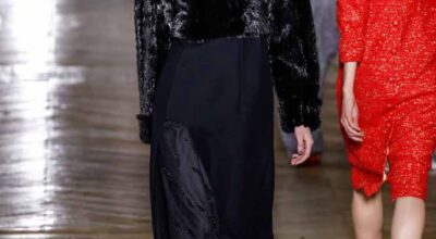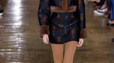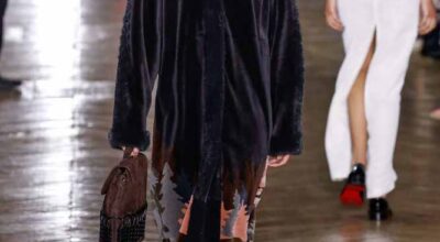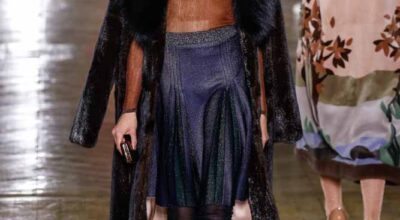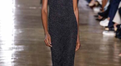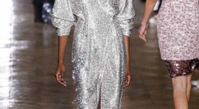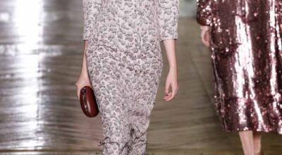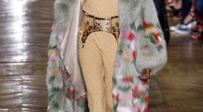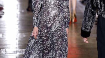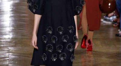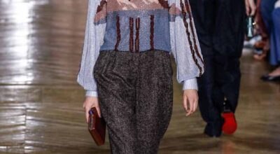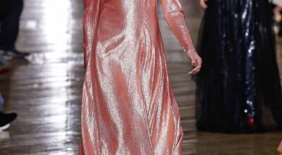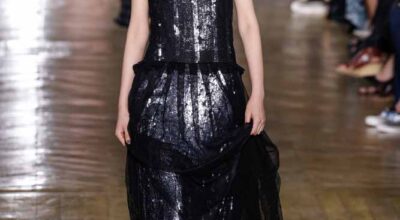 La colección de Ulyana Sergeenko respira nostalgia, busca hacer un guiño a la época en la que los jóvenes soñaban con el cambio en Rusia. Llaman la atención los zapatos masculinos, los originales cuellos de vestidos y abrigos y algunos de los trajes de noche repletos de lentejuelas.