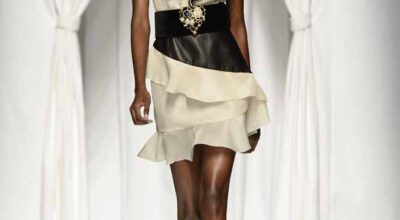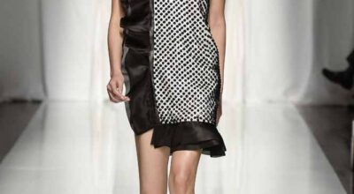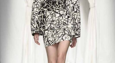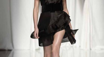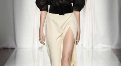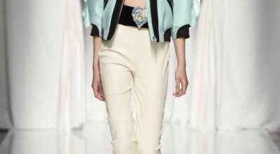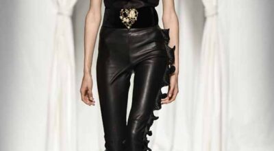 Destaca la utilización del cuero en vestidos, cazadoras y pantalones, así como su reinterpretación de la chaqueta bomber, a la que le añade volantes en el lateral de las mangas. En el juego de volúmenes, además del uso de los volantes también están presenten las mangas abullonadas y la superposición de prendas.