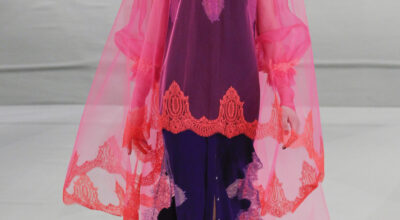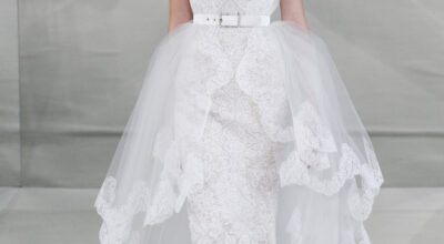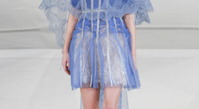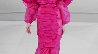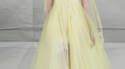 Nos encanta que el diseñador juegue con colores intensos que llene de luz la pasarela. Una colección muy femenina en la que los tules, volantes y encajes han sido los recursos protagonistas.