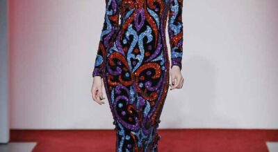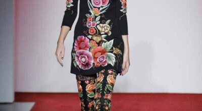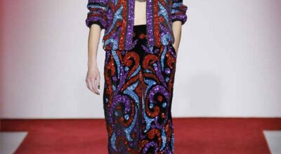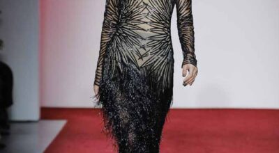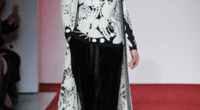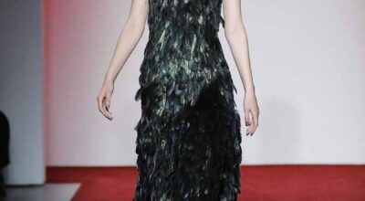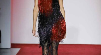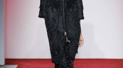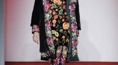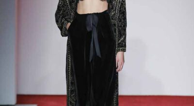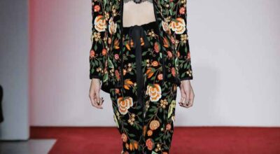 Estampados, brillos, plumas... Las prendas de la colección otoño-invierno de Naeem Khan tienen todo tipo de detalles. Desde vestidos y abrigos con flores de colores bordadas sobre un fondo negro hasta vestidos metalizados con volantes o plisados. También aparecen muchos pantalones entallados a la cintura que se combinan con bralettes y chaquetas.