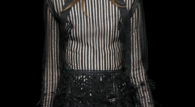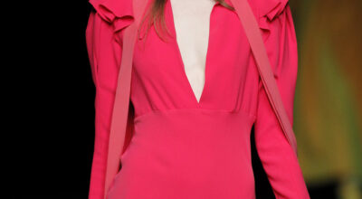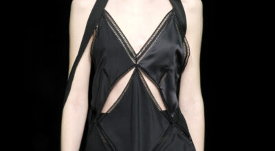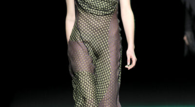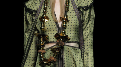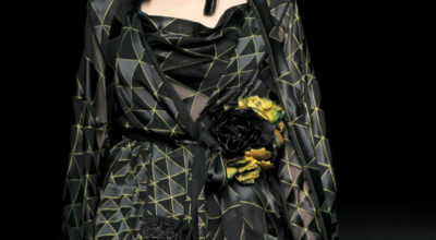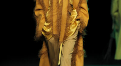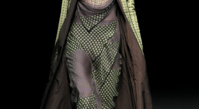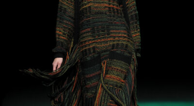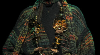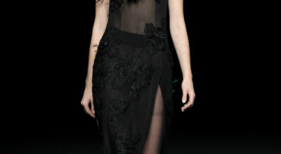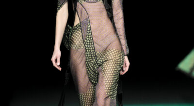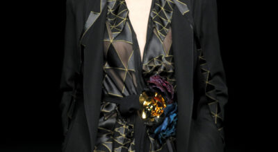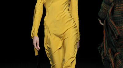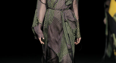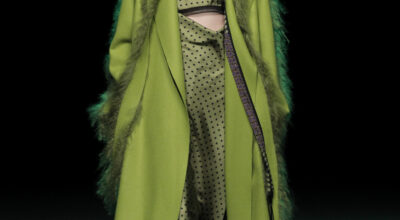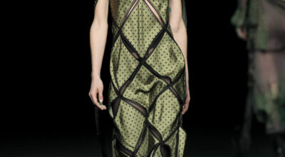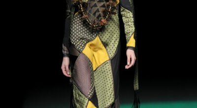 Con una marcada influencia art decó, Juan Vidal presenta una colección brillante en la que los colores oro, verde oliva y negro han gozado de todo el protagonismo. Batines que nos recuerdan a los kimonos japoneses, plumas de avestruz y enormes mangas llaman nuestra atención. Looks sofisticados que nos invitan a cubirir la pasarela con altas expectativas.