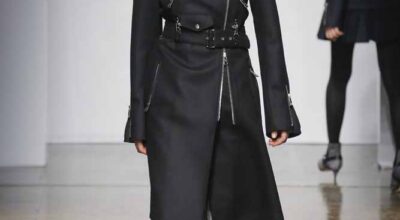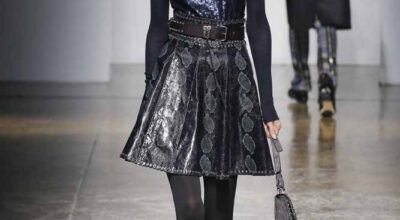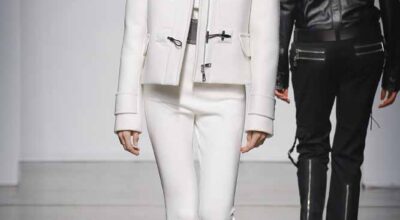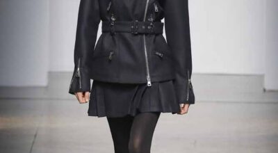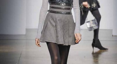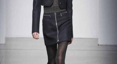 La propuesta de Fay para la próxima temporada de otoño-invierno llega cargada de minifaldas y looks en los que se mezclan prendas formales con otras más desenfadadas. Cazadoras biker, tops y faldas de cuero o pantalones con cremalleras se mezclan con abrigos de paño, faldas tableadas y vestidos. Aparece también el estampado escocés, el de pata de gallo y las tachuelas a modo de decoración.