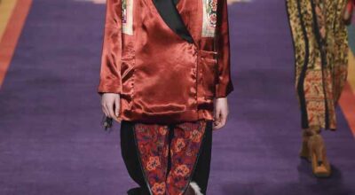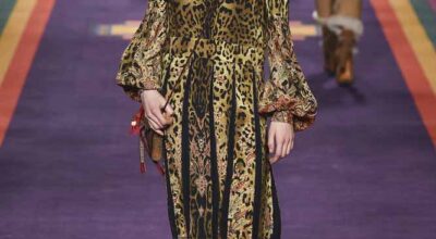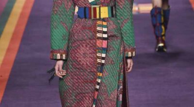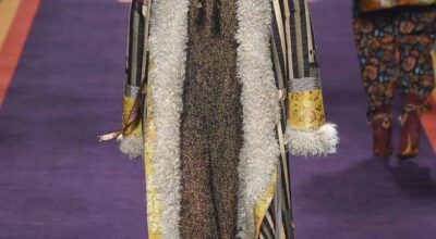 En la pasarela encontramos un círculo proyectado en la pared, que goteaba colores ácidos, banderines de colores en el techo y un grupo de modelos multirraciales de lo más variado e interesante. La Tribu Paisley, nombre que recibe la colección, nos invita a un festival en las alturas, en los picos de las montañas.