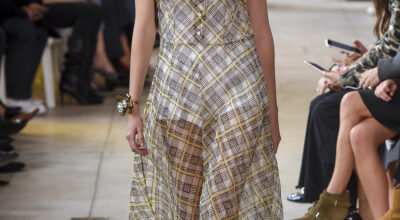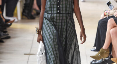 Lo que pudimos ver lejos queda de anteriores colecciones: con paso firme, modelos de países, culturas y colores de piel diferente lucían la colección de la próxima temporada de primavera-verano. Prendas que se alejan de la sobriedad para dar paso a una explosión de color, cortes y formas. Vestidos superpuestos sobre blusas, camisas de cuadros, vestidos con diferentes encajes, combinaciones (casi imposibles) de varios estampados... Y para alejarse aún más de la rigidez, un clásico: calcetines y medias con sandalias. Algo que, seamos sinceras, si se lo vemos a cualquier guiri por la calle nos hace llevarnos las manos a la cabeza. Pero para Miuccia Prada tiene otra intención: darle a Miu Miu ese toque de rebeldía que tanto ansiaba.