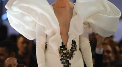 Celine Dion sabe jugar a dos bandas. A veces puede ir muy sobria, con un traje de pantalón o con un vestido negro, pero también sabe cómo destacar, como sucedió con este vestido con hombreras XXL.