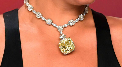 La actriz se fotografió con el Tiffany Diamond, para las imágenes promocionales de la película. En aquella ocasión llevó el diamante amarillo engarzado en una gargantilla.