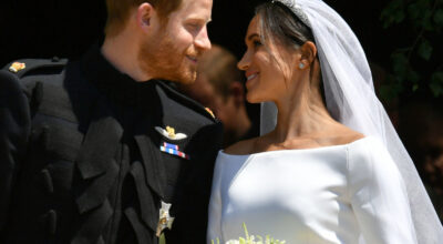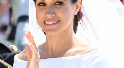 Meghan sí se casó y lo hizo con un look similar. Llevó un vestido sin hombros de Givenchy Alta Costura, diseñado por Clare Waight Keller. Coincide en el corte, en el velo largo y en las mangas.