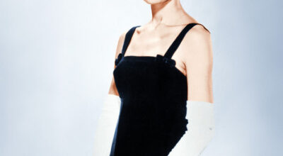 Audrey llevó este vestido para promocionar la película de Sabrina (1954). Un vestido negro, de corte sencillo con guantes largos y tirantes cuadrados.