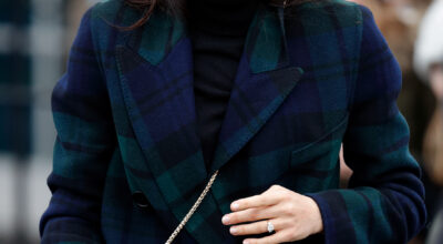 A Meghan también la hemos visto luciendo el tartán con este abrigo de Burberry.