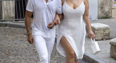 Este es el look que Ashley Graham escogió para la cena celebrada en Avignon por Joe Jonas y Sophie Turner. El dress code era el color blanco y Ashley acertó de lleno con un vestido de mini-lentejuelas abierto en la pierna y sandalias de tacón blancas.