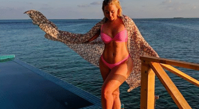 Iskra es una estrella en la playa y siempre deslumbra. En esta ocasión con un bikini rosa y un pareo estampado.