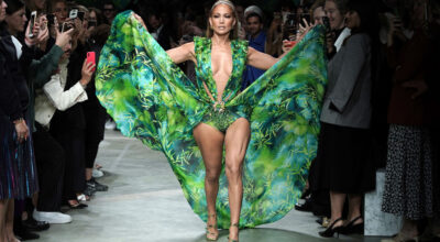 La icónica Jennifer Lopez en la Semana de la Moda de Milán en junio de 2019 con este vestido de Donatella Versace.