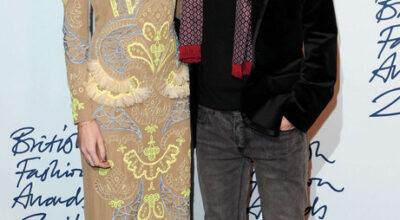 Julien MacDonald y Josephine de la Baume en los British Fashion Awards.