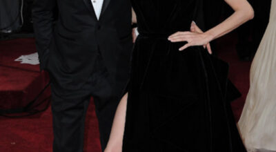 Brad Pitt (con esmoquin de Tom Ford) y Angelina Jolie, de Atelier Versace y zapatos de Salvatore Ferragamo