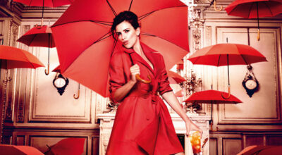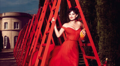 Mes de Junio. Penélope Cruz con vestido de Vivienne Westwood y zapatos de Salvatore Ferragamo. La bebida es un Campari Orange Passion