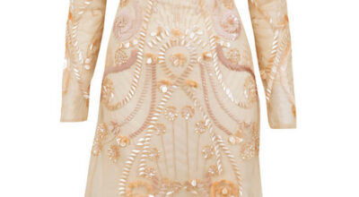 Vestido embellecido en escote y lentejuelas
